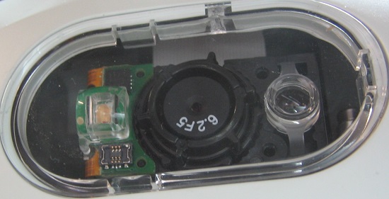 La alia roboto estis pli malforta kaj sendanĝera por homoj. Ĝi estas oportune mallaŭta. Ĝi havas du brakoj kiel homoj. Unu el siaj manoj enhavis fotilon (kiun ni tamen ne uzis). La fotilo havas fiksan optikon "6.2F5" kiel vi vidas en la suba foto. Do la aperturo estas nur iom pli ol unu milimetro (Fokusa distanco dividita per nombro de aperturo : 6,2mm / 5).