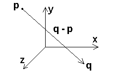 Vektori voidaan ymmärtää kahden pisteen erotukseksi, loppupiste - alkupiste. Vektorin suunta on alkupisteestä p loppupisteeseen q.