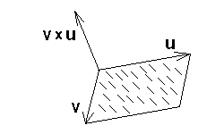 Ristitulo voidaan vaihtoehtoisesti käsittää kuvan mukaisesti vektoreiden v ja u määräämän suunnikkaan pinta-alaksi.