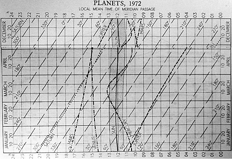 La libro por la jaro 1972 ankaŭ enhavas grafikan kalendaron por planedoj. Ĝi estas utila por solvi la videblecon de ĉielaj objektoj.