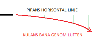 Vi måste antaga att en liten lutning förändrar inte det mån vad kulan faller från pipans linje. Man räknar avståndet fortfarande horisontalt, fast pipan har en lutning till vågrät. Kulan behöver ju stiga litet men den energi som luftmotståndet hela tiden kräver, när kulan flyger genom luften, är relativt stor i jämförelse med den ringa energi som krävs att lyfta kulan ovanför siktlinjen i banans början.