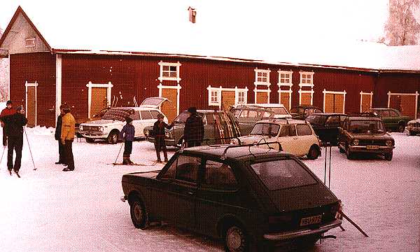Koulu on toiminut myös kylän tärkeänä hiihtotapahtumien pitopaikkana, myös muiden kuin koululaisten. Tässä kuvassa kylän urheileva nuoriso (ja vähän vanhemmatkin) ovat kokoontuneet ottamaan mittaa toisistaan 1970-luvun puolivälissä.