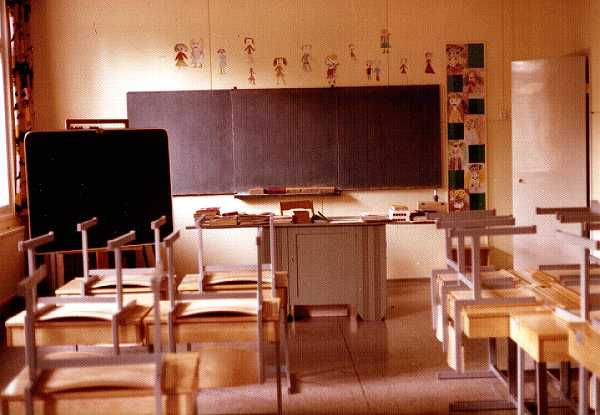 Oheisissa kuvissa ovat vuosien 1971/1972 alaluokat alakoulurakennuksen luokkahuoneessa ja vuosien 1972/1973 alaluokat yläkoulurakennuksen voimistelusalissa. Mukana molemmissa kuvissa on myös pikkuveljeni Pasi. Voimistelusalissa on uusi komea lakattu puulattia! Alakoulun puulattia taas on perinteinen ruskeaksi maalattu.
