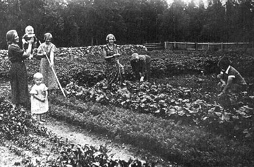 Vasemmalla on vanha kuva (ehkä 1930- tai 1940-luvulta) alakoulun puutarhasta opettaja Aholan aikaan. Taustalla näkyy vanha kiviaita. Kivistä on maaperä epäilemättä ollut, mutta hiukan omituiselta tuntuu ettei yläkoulun puutarhan lähistöllä ole vastaavaa kiviaitaa.