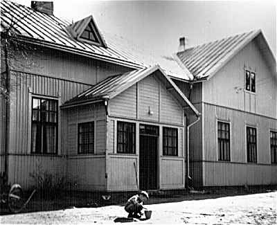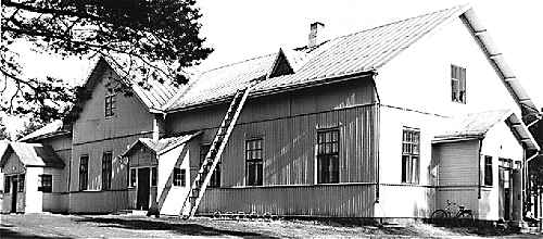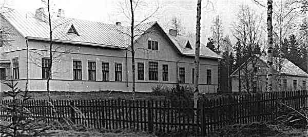 Yläkoulurakennus lähes valkoisessa värityksessään suunnilleen 1960-luvulla. Oikeanpuolimmaisissa kuvissa näkyvät koulun katolle johtavat jyhkeät puiset tikapuut. Lapsuudessani myös alakoulurakennuksen ja ulkorakennuksen tikapuut olivat vastaavanlaisia. Ja puulämmityksen aikakaudella niitä todella myös säännöllisesti tarvittiin, sillä nuohoojan (eli »nokikolarin») täytyi tuolloin kiivetä katolle päästäkseen käsiksi savupiippuihin. Puiset tikapuut korvattiin metallirakenteisilla palotikkailla joskus 60- ja 70-lukujen vaihteessa. Puutikkaat olivatkin tällöin ehtineet varsin huonoon - nuohoojan kannalta ehkä jopa vaaralliseen - kuntoon.