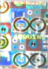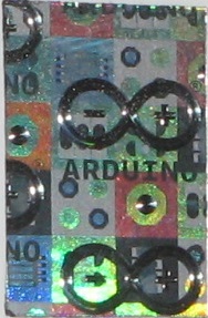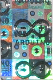 Tässä lopuksi muutama salamakuva yhdestä ja samasta Arduino Uno -pakkauksen hologrammista hiukan eri suunnista: