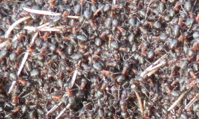 Muurahaispesään Aurinko ainakin paistaa ja muurahaiset ovat jo lujasti liikekannalla kuten oheinen kuva paljastaa.