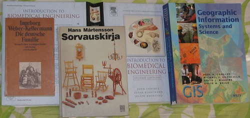 "Introduction to Biomedical Engineering", hurja kirja. Vaan enpä usko että sille(kään) suunnalle minulle väyliä käytännössä olisi avoinna. On yritettävä olla oman elämänsä sankari, oman itsensä herra. Ihmisen mieli on kuitenkin vapaa vaeltelemaan kaikenlaisilla kauniilla ajatuksen ja tiedon viheriöivillä kesäisillä kukkakedoilla ja tietotaidon raikkaitten purojen varrella.