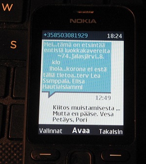 Oikeastaan alan naputella tätä tekstiä jo heinäkuun 20.päivä, lähes 2 viikkoa ennen otsikon päiväystä. Haluan kuitenkin päivätä jutun nimenomaan elokuun kahdeksannelle päivälle, sattuneesta syystä. Syy käynee ilmi oheisesta kuvasta joka esittää kännykkään saapunutta tekstiviestiä. Etsitään entisiä luokkatovereita "Jalasjärvi 1973 - 74" tapaamisen merkeissä.