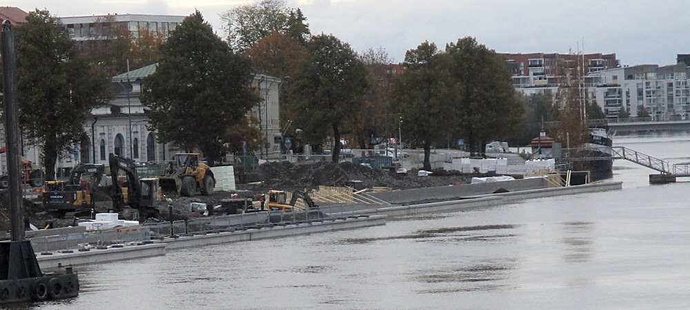 Taavi-silta kuitenkin ehkä piankin hinataan pois talviteloilleen, koska sen toiselta puolelta on jo veneiden kiinnitykseen käytettäviä poijuja poistettu, joten lie korkea aika esittää syksyn viimeiset kuvat rakennustyömaasta.