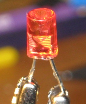Mi devas konfesi ke tiuj ornamaĵaj LEDoj estas bonaj kaj profitaj por tensioj 2,5 ... 2,9 voltoj sen plia reostato. Ili ne malŝparas energion nur por varmigi reostaton, sed utililigas elektron bone por krei pli da lumo. Oni eble povus uzi du tiaj LEDoj en serio kun fonto de 5 V tensio kies intera rezisto estas tre malgranda?