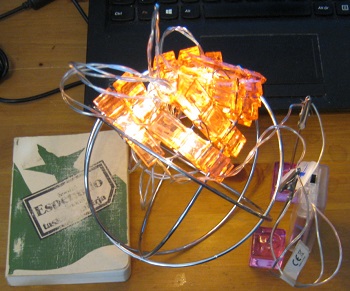 Ni plue pripensu pri la grando de kurento. Kiel ekzemplo mi prezentas ian malmultekostan simplan ornamaĵan LED-lumigilon kiu funkcias per du 1,5V AA-baterioj. La kurioza trajto de ĉi tiu efektivigo estas ke ĝi evidente ne utiligas (eksteran al la baterio) reostaton por limigi la kurenton. Nenia reostato estas videbla. Dekstre ni vidas la foton de tiu LED-lumigilo.