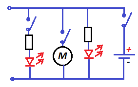En komputila dometo motoroj tamen devas esti pelitaj per ekzemple MOSFET kaj ni bezonas protektan diodon. Motoro konsumas multe pli da kurento ol LED kaj tial la fonto de elektro kaj la tensio eble estas alia por motoro kaj LEDoj.