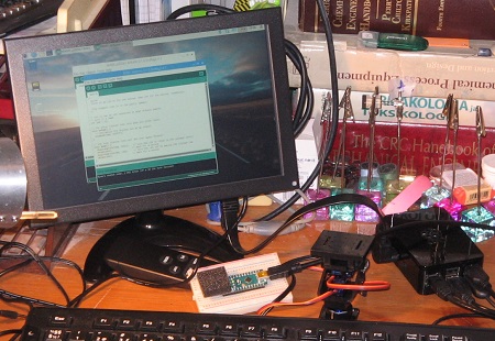 Ni notu ke la pinto 3 en la programo signifas pinton D3 en Arduino Nano kaj ne la pinton A3 kiel mi unue erare desegnis.
