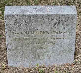 Ĝi havas la apude fotitan ŝtonan ŝildon NAAPURUUDEN TAMMI, la Kverko de Najbareco. Du kluboj aŭ societoj estas nomitaj en la ŝildo, la klubo de malnovaj pori-anoj kaj la societo de Rauma.