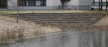 Nominale estas vintro. Estas iom da glacio en la lagetoj, sed fakte pluvis multe da akvo kaj oni atendas pli da ŝtormo kaj ventego. La nivelo de akvo en la lageto estas iom alta. La surfaco de akvo atingas la plej subajn ŝtupojn de greka teatro kiel la apuda foto indikas.