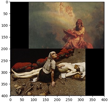 Nova Python -programo por nia forta Raspberry Pi -mikrokomputilo. Ni unue legu du koloraj fotoj, grando la sama 400x400 por ambaŭ ĉi tiuj fotoj. Mi iom prilaboris la fotojn tiel ke oni eble povus ilin unuigi kaj ricevi interesan rezulton. Superfluaj partoj estas vere tute nigraj en ambaŭ fotoj, do ĉiuj 3 koloroj de tiuj punktoj estas nur nuloj (0).