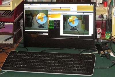 Mi jam fotis mane tra VNC Viewer - kaj komandaj fenestroj de distancaj komputiloj - per ambaŭ fotiloj de distanca 3D-fotilo kaj la pretaj fotoj estas videblaj en la du fenestroj de VNC Viewer en la loka ekrano.