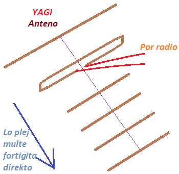 Apude vi vidas ian krudan principan iom 3D -stilan desegnaĵon pri direktiga YAGI -radioanteno. La plej bonaj mezuroj tamen ne estas tre facilaj por kalkuli. La plej granda larĝeco de anteno estas proksimume λ/2 , duono de ondolongo. Povas esti pli multe da elementoj, sed se oni ne scias la lokon kaj precizan plej bonan longon de elementoj, kial vane labori tro multe. Bonaj antenoj ne estas tre facilaj por plani kaj kalkuli.