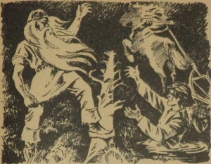Grandega estis la forto de kantanta heroo Väinämöinen. Li kapablis kanti la pli junan konkursanton Joukahainen suben al marĉo, kiel la apuda desegnaĵo el "Maamme kirja" atestas. Nenia pli granda perforto uzata, nur celkonscia magia kantado.
