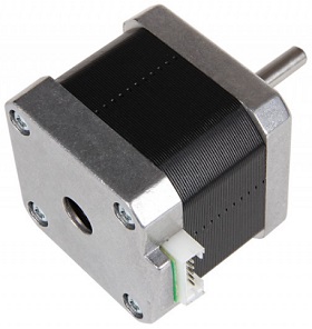 La dekstra iom pli granda kaj pli peza bipolar -stepper estas nomita "Joy-IT NEMA17-04 - 42SHD0217-24B", nominale por tensio 3,3 voltoj kaj elektra kurento 1,5 amperoj.
