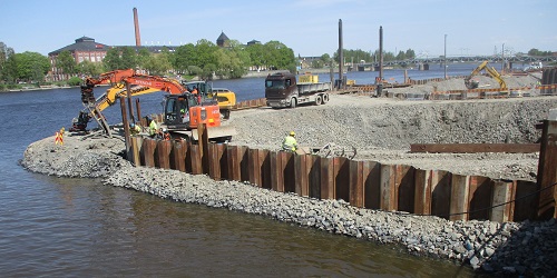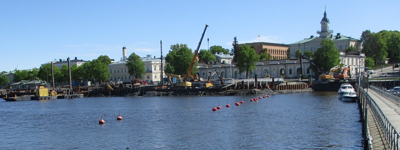 Oni ja konstruas 'riveran centron' en urbo Pori. Ŝajnas jam klare ke la konstrua laboro ne pretiĝos dum ĉi tio somero. Espereble ĝi estos preta aŭtune. La laboro malfruiĝis ekzemple pro la vintra akcidento kion mi iom fotis por la januara artikolo #420. Ne estas tute simple kaj facile por konstrui je la rivera bordo.