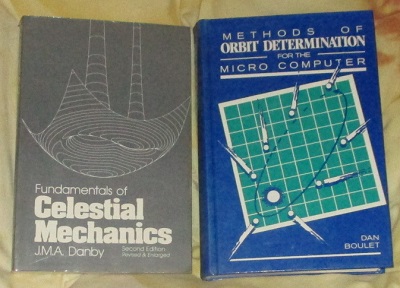 Ekzistas ja scienca teorio pri la orbitoj. Nura teorio tamen ne estas kontentiga. Ni bezonas praktikaj kalkuloj, veraj konkretaj rezultoj. Nature la libroj de D. Tattersfield estis por mi tre interesaj. Du aliaj libroj estas fotitaj apude. Dan Boulet skribis por amatoroj la iom facilan libron "Methods of Orbit Determination for the Micro Computer", jaro 1991. La dua eldono de lernolibro "Fundamentals of Celestial Mechanics" de J.M.A. Danby estas el jaro 1988 kaj kredeble multe pli moderna ol la origina eldono el jaro 1962.