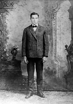 La sekvanta foto eble prezentas la patron de mia patro kiel juna viro en Ameriko? Li naskiĝis 1882, enmigris al Ameriko en 1903 kaj returnis al Finnlando 1910. En la foto li do estas aĝa proksimume je 21 ... 28 jaroj.