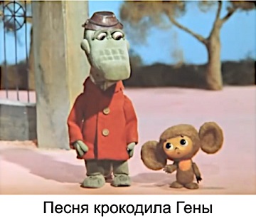Por trankviligi la tutan frenezan mondon mi tamen nun volas prezenti la vortojn por la naskiĝtaga kanto de fama rusa krokodilo "Gena".