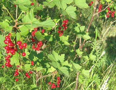 En arbaro ankaŭ kreskas arbedoj de ribo. Pretaj beroj de ribo estas plejparte ruĝaj aŭ nigraj. Mi tamen suspektas ke la blankaj beroj en la apuda foto de ribo estas jam kompare maturaj kaj pretaj.